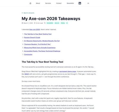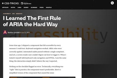 Axe-con sessions distilled into one blog post. Karl Groves calculates $347,060 in disruption costs per audit cycle. And Hashim Quraishi learns why adding role="link" to a button broke everything.